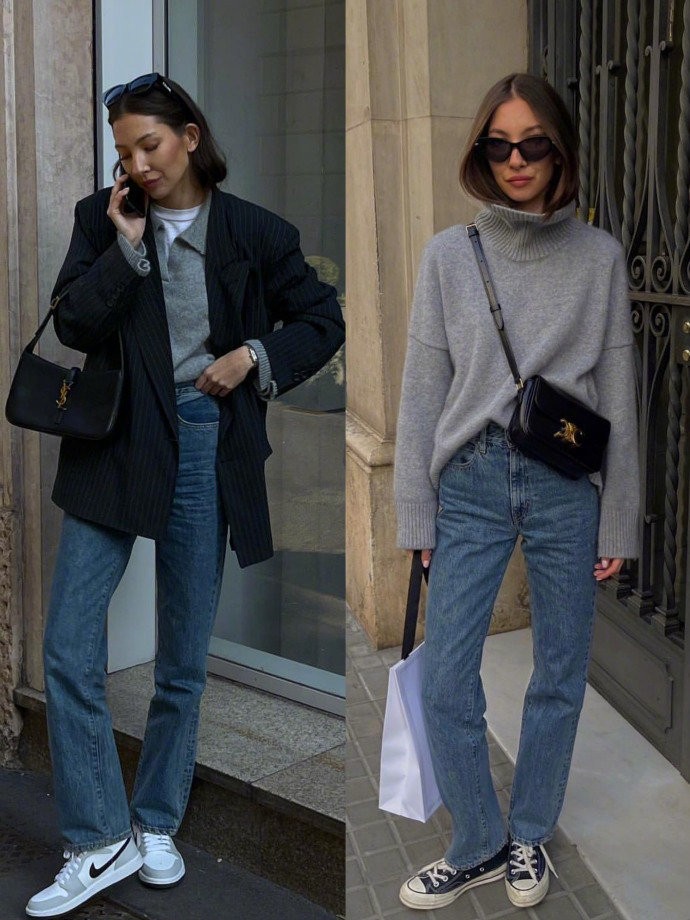走进 fakerstrom 的穿搭世界,你会发现基础款是她不变的创作底色,但这些看似朴素的单品,经过她的组合后却焕发出全新的生命力。一件剪裁利落的黑色西装,她不会搭配刻板的衬衫与西裤,反而会内搭一件同色系的修身针织衫,下装选择一条高腰直筒的米色长裤,脚踩一双简约的黑色乐福鞋,既保留了西装的干练气场,又通过材质与色彩的微妙碰撞,打破了职场穿搭的沉闷感;日常出街时,她常以一件宽松的白色纯棉 T 恤为基础,搭配一条垂坠感极佳的黑色阔腿裤,再外搭一件短款的灰色牛仔外套,没有多余的装饰,却凭借单品的版型优势与层次感,轻松营造出随性又不失格调的都市休闲风。