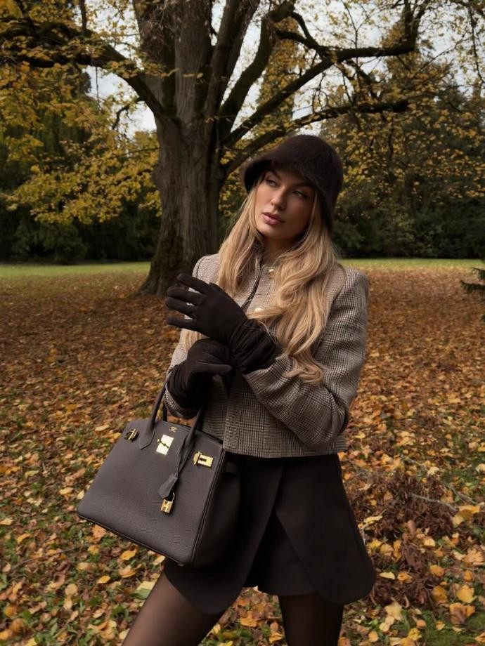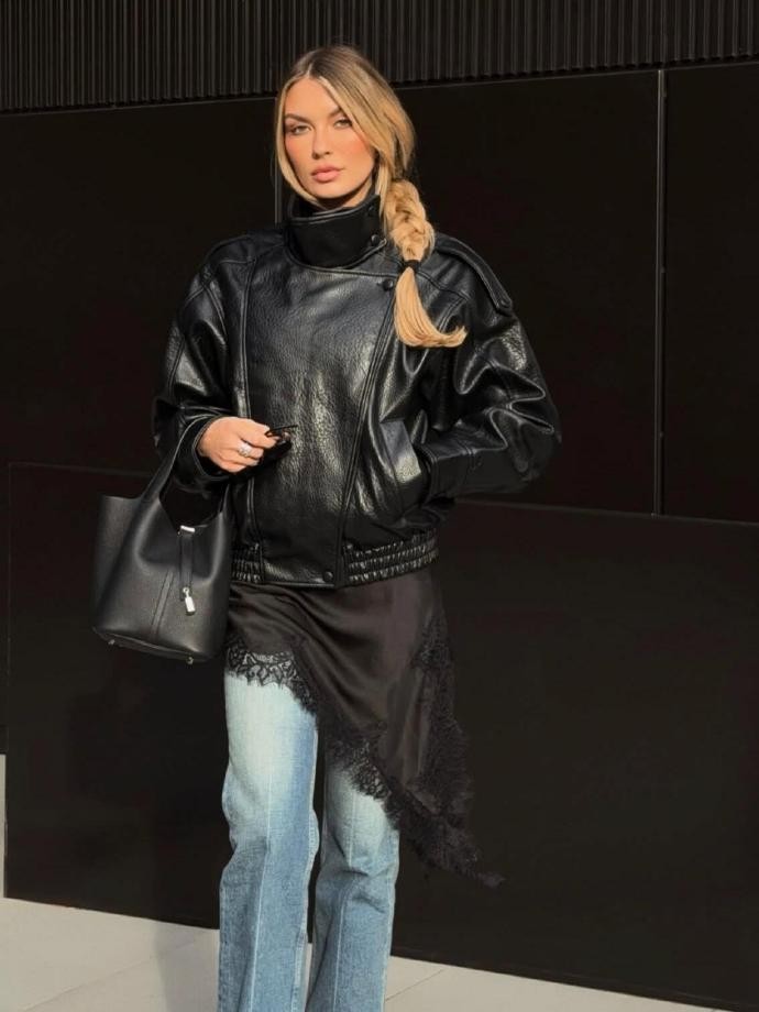 单品选择上,Paulinakurka 的衣柜里全是 “万年百搭款”,没有复杂的剪裁,却胜在版型和面料。她钟爱的廓形西装、垂坠感十足的针织衫、直筒牛仔裤、皮质半裙,都是可以反复搭配的经典单品。她尤其看重面料的质感,比如哑光的棉质衬衫、软糯的羊绒毛衣、挺括的亚麻西装,这些面料自带高级滤镜,哪怕是简单的叠穿,比如针织马甲配衬衫,或者长款风衣搭卫衣,都能穿出随性又精致的味道,完全不用纠结今天穿什么,几件基础款就能搭出 N 种花样。