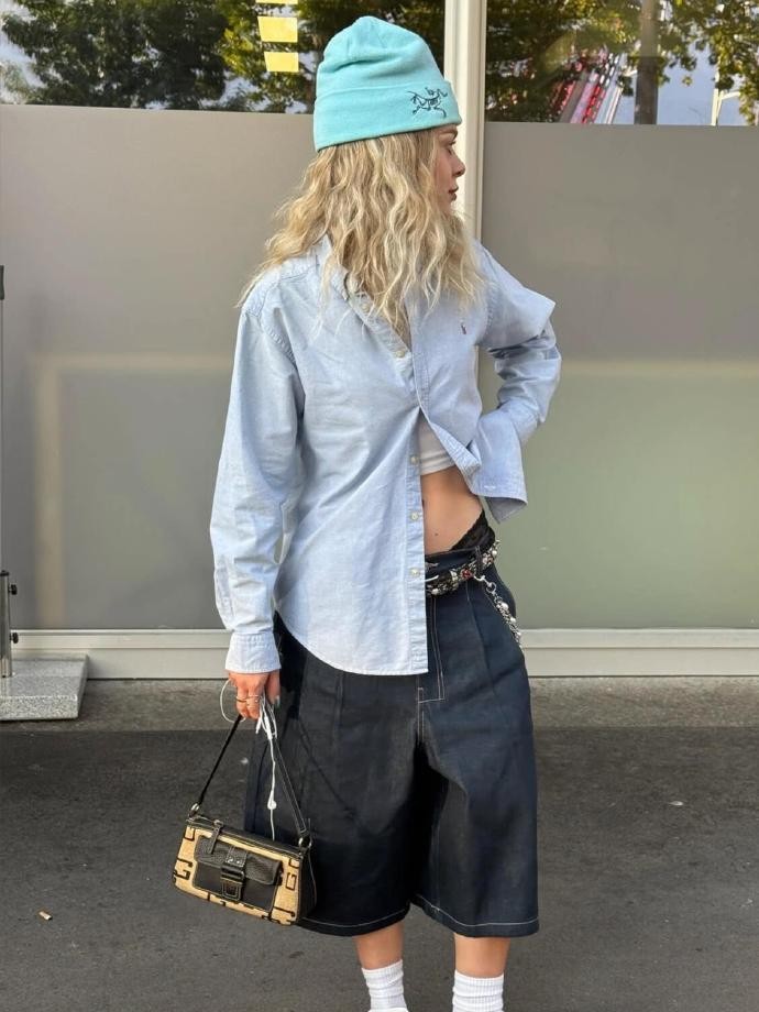 仔细翻看她的穿搭分享,会发现她特别擅长用基础款打造多样风格。比如一件简单的白色衬衫,她不会只搭配西装裤走通勤风,有时会把下摆随意塞进高腰牛仔短裤里,外面叠穿一件 oversize 的黑色棒球服,再配上一双小白鞋,瞬间就有了青春活力的校园感;要是想走温柔知性路线,她会把白色衬衫的袖口挽到小臂,搭配一条卡其色的直筒长裙,腰间用一条细皮带勾勒出腰线,脚上穿一双米色的乐福鞋,最后拎一个浅棕色的腋下包,整套造型简约又显气质,不管是见客户还是和朋友下午茶,都能让人眼前一亮。而且她选的基础款大多是质感好、版型正的单品,哪怕穿很多次,也不会显得过时,特别适合预算有限又想提升衣品的女生。