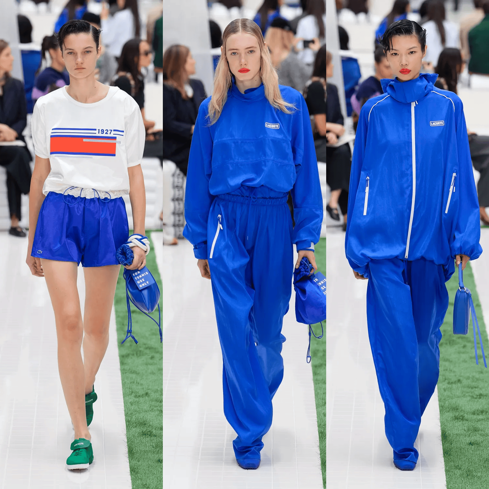 本系列每件单品皆从真实着装场景中汲取创意灵感,这正是 LACOSTE 品牌历久弥新的核心基因。品牌创意总监 Pelagia Kolotouros 在首季引入剪裁工艺后,本季以感性宽松廓形与重构 Polo 衫延续设计探索:Oversize 版型、透明尼龙面料搭配空灵感结构设计,或与点缀复古运动元素的阔腿裤组合。LACOSTE 标志性上衣以挺括府绸与毛巾面料焕新演绎,饰以 “Tennis for Everyone” 等标语,重塑运动精神内核。热带羊毛与马海毛交织,搭配特染尼龙与皮革材质,在舒适感与悬停状态的诱惑张力间达成精妙平衡。本季鳄鱼标识灵感源自草地网球场,以刺绣工艺诠释法式匠心,在传承品牌基因的同时为经典标识注入当代新意。本季品牌标志性百褶裙手袋 Lenglen 也强势回归,其倾斜剪裁细节灵感源自复古网球百褶裙,手柄设计呼应网球拍握柄的经典造型。