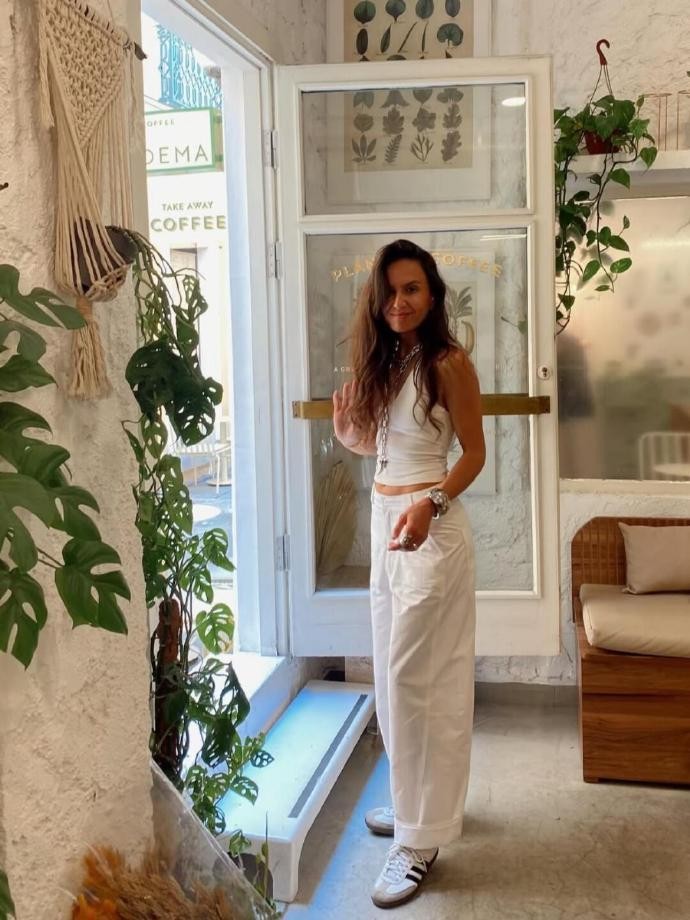 ummutavsanyildiz 的穿搭最让人惊艳的地方,在于她对 “基础款” 的极致盘活。翻看她的动态会发现,衣柜里常见的白衬衫、直筒牛仔裤、针织开衫、廓形西装等单品,在她的搭配下总能焕发出新的生命力。就像她常穿的一件米白色 oversize 西装,有时会内搭短款吊带和高腰阔腿裤,露出纤细腰线的同时,用宽松与紧身的对比打造出慵懒又利落的气场;有时又会搭配简单的白色 T 恤和直筒牛仔裤,再配上一双复古马丁靴,瞬间让基础款组合多了几分酷帅的街头感,这种 “一件单品多种穿法” 的思路,特别适合预算有限或不想频繁买新衣服的人。