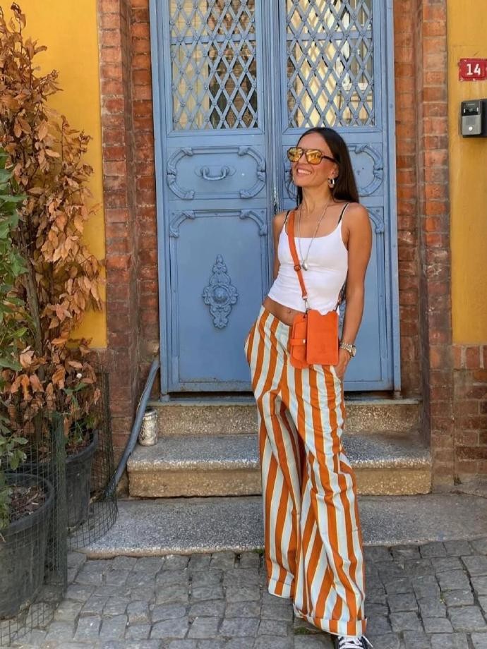 除了单品搭配有巧思,ummutavsanyildiz 对色彩和细节的把控也值得细细琢磨。她很少选择过于鲜艳扎眼的颜色,反而偏爱莫兰迪色系、大地色、黑白灰等低饱和度色调,这些颜色不仅显白又不挑肤色,搭配起来也不容易出错。比如她一套很火的秋日穿搭,用浅驼色针织衫搭配米白色灯芯绒长裤,再外搭一件同色系的短款风衣,整体色调和谐统一,温柔又显质感;偶尔想增加亮点时,她也不会大面积使用亮色,而是通过小配饰来点缀,像一条焦糖色的皮质腰带、一对金属质感的耳环,或是一个复古花纹的帆布包,既能打破整体造型的单调感,又不会显得突兀,这种 “少而精” 的细节点缀方式,能让普通穿搭瞬间提升精致度。