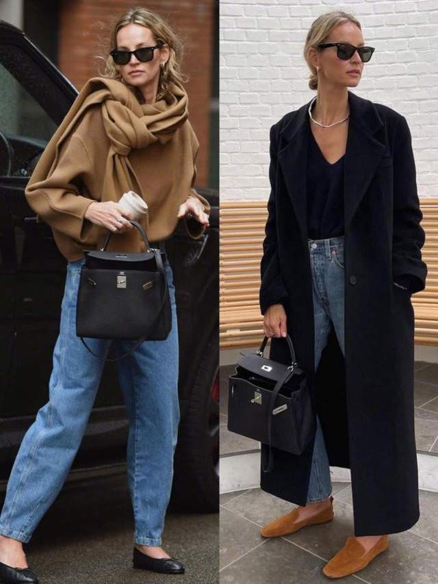 她对色彩的把控也堪称 “教科书级别”,很少尝试大面积的亮色或复杂的图案,反而偏爱低饱和度的莫兰迪色、经典的黑白灰,或是温柔的大地色系。比如一套浅卡其色的风衣搭配米白色针织内搭,下装是同色系的直筒裤,整体色调统一又和谐,再配上一双米色乐福鞋和一个棕色皮质托特包,瞬间将 “荷兰风” 的简约与优雅诠释得淋漓尽致。这种低饱和色系的搭配不仅对肤色包容度高,还能自然提升穿搭的质感,即使是平价单品,也能穿出轻奢的感觉。