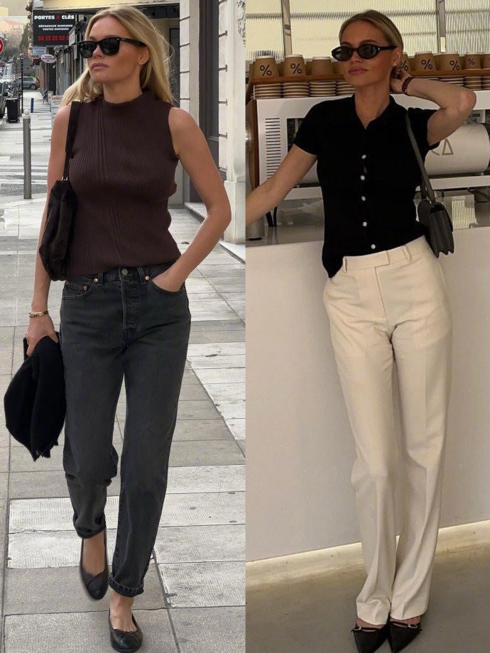 翻开 Claire Rose 的 ins 主页,你会发现她的衣橱仿佛被精心筛选过 —— 没有花里胡哨的图案,没有过度堆砌的配饰,只有一件件版型利落、质感上乘的基础款单品:线条流畅的纯色连衣裙、剪裁合身的棉质白衬衫、垂坠感极佳的直筒西装裤、柔软亲肤的羊毛针织衫…… 这些看似普通的单品,在她的搭配下却焕发出不一样的生命力。比如她常穿的黑色直筒连衣裙,没有多余的蕾丝或刺绣装饰,仅靠恰到好处的收腰设计勾勒身形,长度停在膝盖上方两厘米处,露出纤细的小腿线条,搭配一双裸色尖头平底鞋,再拎一个极简设计的黑色皮质手提包,整体造型干净利落,既适合通勤,又能应对日常约会,简单却足够亮眼。