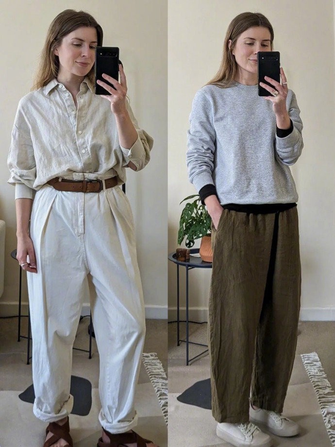 Angharad Jones 在单品选择上,始终围绕 “显高” 与 “英伦感” 两大关键词。比如短款外套是她的标志性单品,无论是复古的格纹西装、柔软的针织开衫,还是利落的牛仔夹克,她都会选择衣长在腰线以上 5-8 厘米的款式,搭配高腰裤或高腰裙时,能瞬间拉长下半身比例,让视觉重心上移;内搭方面,她很少穿过长的宽松卫衣或 oversizeT 恤,反而偏爱短款修身针织衫、简约衬衫,或者将长款上衣的下摆塞进下装,露出清晰的腰线,避免因衣物过长造成的 “压个子” 问题;下装则以高腰直筒裤、烟管裤和 A 字短裙为主,高腰设计能提升腰线,直筒裤的裤长刚好到脚踝,搭配短靴时露出一小节脚踝,A 字短裙则能优化胯部比例,掩盖腿部线条的小瑕疵,这些单品的选择,既贴合英伦风的利落感,又能最大程度发挥显高效果。