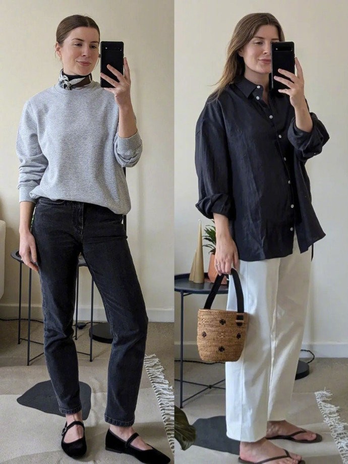 在比例优化技巧上,Angharad Jones 的思路简单又实用,特别适合小个子借鉴。她最常用的就是 “上短下长” 的搭配公式,比如短款格纹西装内搭白色短 T 恤,下身搭配高腰阔腿裤,裤脚微微盖住鞋面,再搭配一双裸色高跟鞋,视觉上能让腿部线条延长 5-10 厘米;偶尔尝试 “同色系顺色搭配” 时,她会选择上下装同色但不同材质的组合,比如浅灰色针织上衣搭配深灰色高腰休闲裤,用材质差异增加造型层次感,同时避免色彩分割造成的比例断裂,让整体线条更流畅;面对宽松单品时,她会用 “腰带” 作为辅助,比如穿宽松的长款衬衫时,在腰间系一条细腰带,轻轻勒出腰线,再搭配短裤打造 “下衣失踪” 的效果,既保留了衬衫的慵懒感,又不会让宽松版型显得拖沓,轻松优化身材比例。