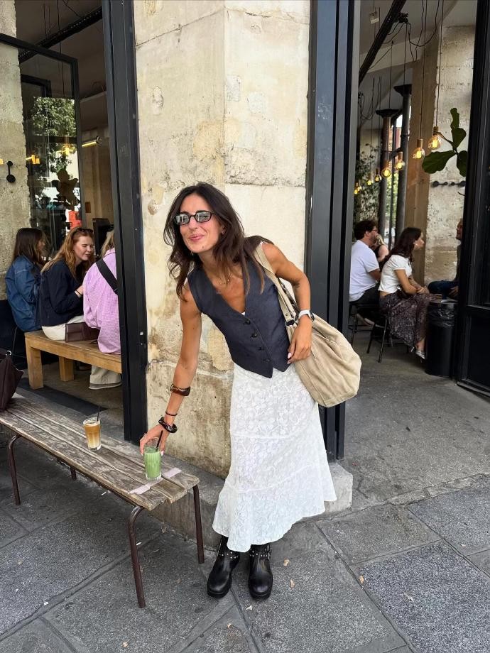 在色彩搭配上,florecita.hsl 的思路也十分值得借鉴。她不局限于单一的色调,反而很会用 “柔和撞色” 和 “同色系延伸” 打造视觉亮点。比如她的一套出游造型,上身是淡蓝色的宽松衬衫,内搭一件白色小吊带,下身搭配一条鹅黄色的半身裙,脚上穿一双白色帆布鞋,淡蓝与鹅黄的碰撞清新又治愈,像把春天穿在了身上,而且两种颜色饱和度都不高,完全不会显得突兀;而在通勤造型中,她更偏爱同色系搭配,比如浅灰色的西装外套,内搭浅咖色的针织衫,下身搭配深灰色的西装裤,再用一双米色的高跟鞋过渡,整个造型沉稳又不失温柔,还自带高级质感。这种根据场景调整色彩搭配的思路,既能满足不同场合的穿搭需求,又能展现出独特的审美品味,新手跟着学也很难出错。