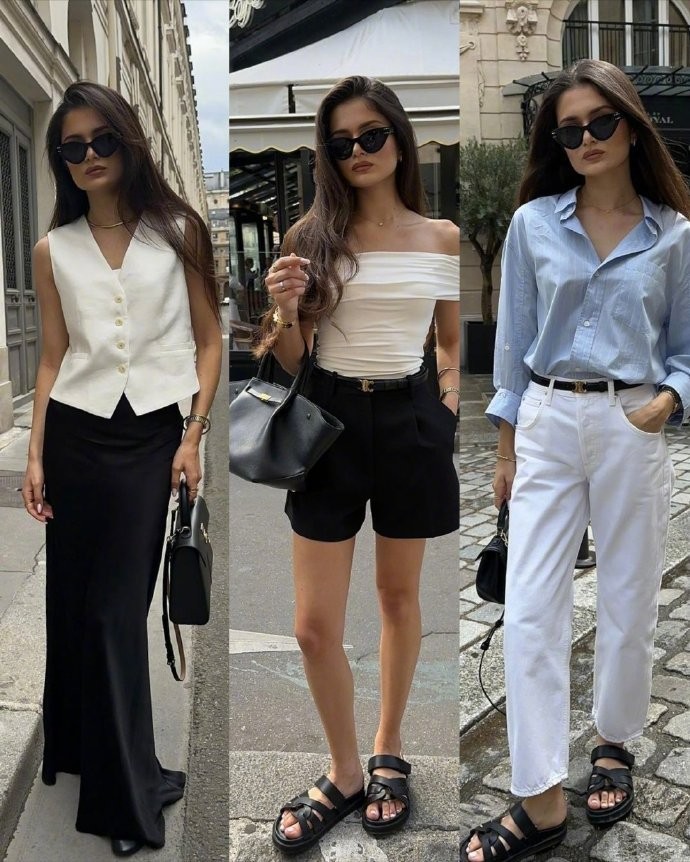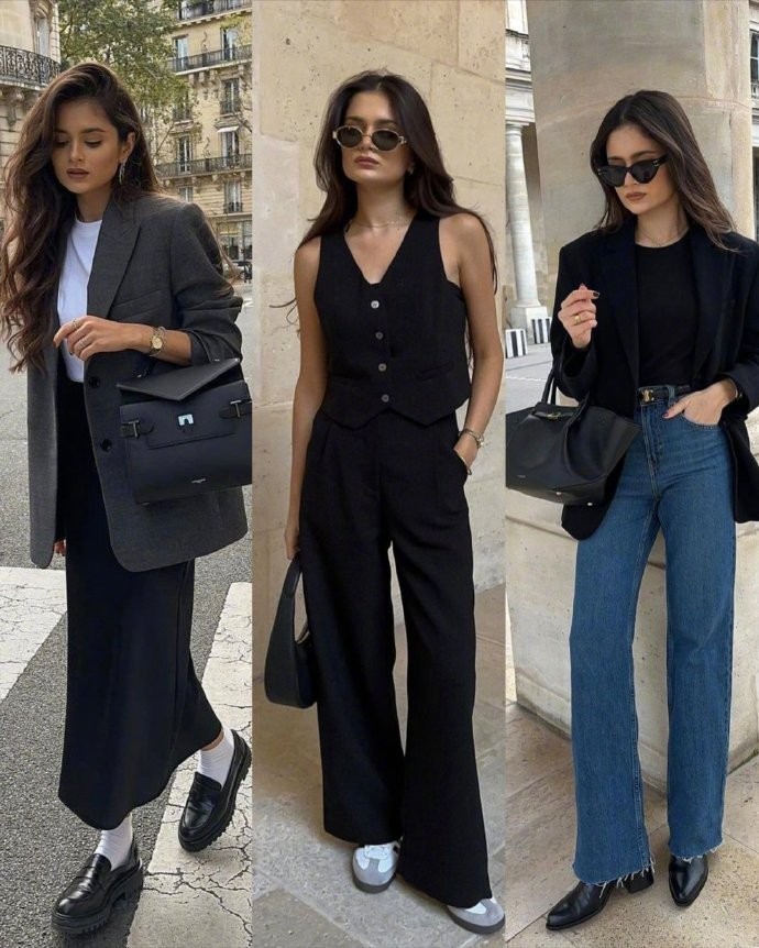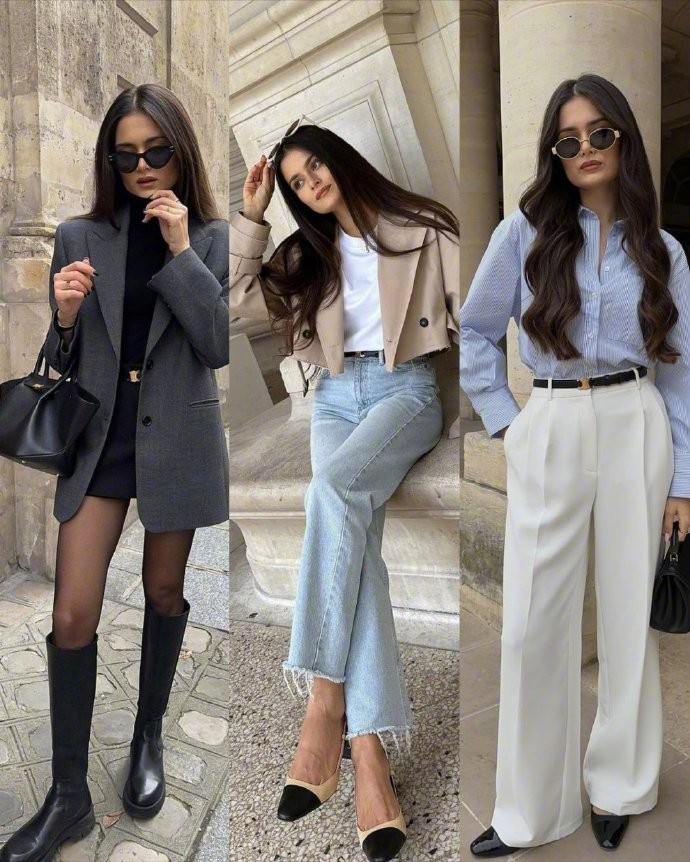 gavanndi 的穿搭智慧,更在于将法式 “不经意的精致” 发挥到极致。她擅长制造精妙的冲突感:挺括西装肩线与柔软针织内搭的对话,粗花呢半裙与光滑真丝衬衫的碰撞,看似慵懒随性的叠穿,实则是 “三明治法则” 与 “材质交响曲” 的精心演绎 —— 春季的真丝衬衫 + 针织开衫 + 羊毛半裙,冬季的绗缝大衣 + 马海毛针织 + 双绉真丝衬衫,在温度与风度间找到完美平衡。她的造型从不追求刻意的 “时髦感”,而是通过解开衬衫最上方纽扣、将男士领带变形为不对称项链等细微调整,让通勤装无缝切换为晚宴造型,这种 “80% 基础款 + 20% 设计元素” 的公式,正是现代法式 OL 装的革新核心。当她身着高腰烟管裤搭配平底方跟鞋走过圣日耳曼大街时,那些隐藏在袖口内侧的回针车线、连衣裙接缝处的 0.3cm 隐形包边,都在无声诉说着:真正的高级从不需大声宣告,它藏在每一处用心的细节里,如同 gavanndi 本人,在喧嚣的时尚世界中,以一种沉静而笃定的姿态,诠释着 “人富衣素” 的永恒优雅。