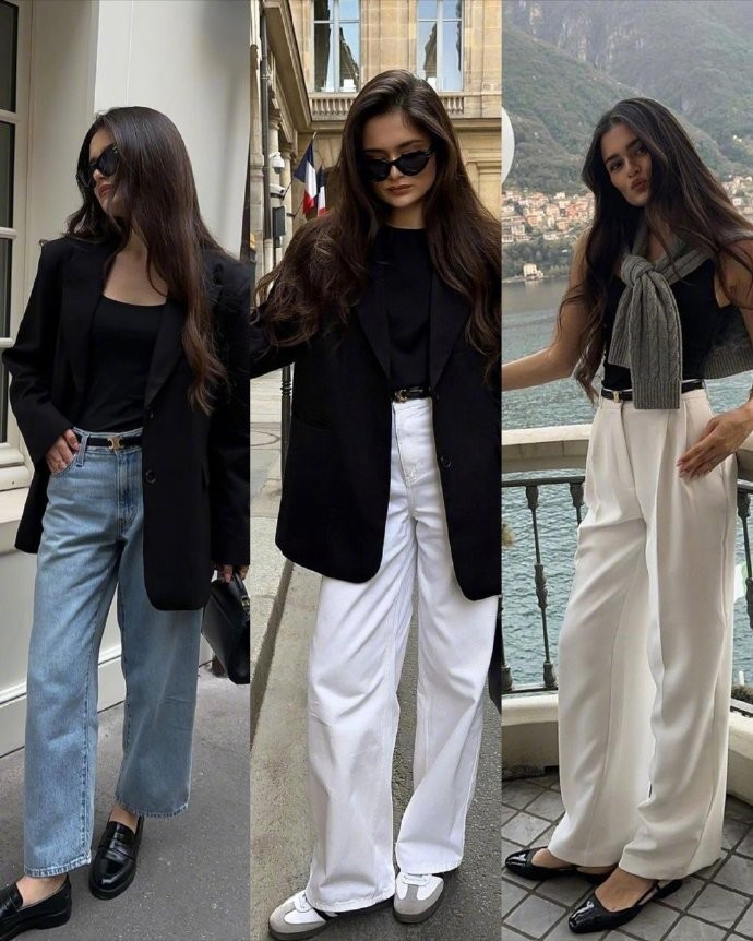 gavanndi 的衣橱是老钱风 “静默奢华” 的最佳注脚,她深谙 “质量远胜于数量” 的道理,从不被转瞬即逝的时尚浪潮裹挟。那些剪裁利落的 oversize 西装、硬朗挺括的西裤与基础款衬衫,是她造型中不变的主角,这些单品没有醒目的 logo,却在每一处缝线与轮廓中透露着精湛工艺 —— 就像巴黎匠人协会认证的传统工艺那般,一枚牛角扣需经过 12 道手工打磨,纽扣表面轻刮时发出的沉闷 “嗒” 声,都是质感的无声宣言。她偏爱黑白灰的极简色系,偶尔点缀的蓝色或驼色,如同巴黎时装工会报告中 65% 经典套装选用的米白、鸽灰般,低饱和度的色调搭配出克制的撞色美学,雾霾蓝与燕麦白的组合营造出独特的视觉呼吸感,仿佛北纬 48° 阳光洒在面料上的温柔温度。