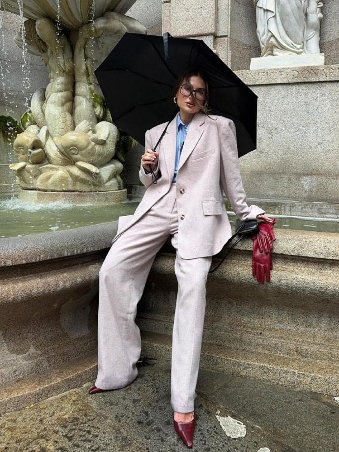 色彩搭配是alena_dedarde穿搭的另一大亮点,她敢于尝试不同的色彩组合,却又总能把握好色彩的平衡度。她既喜欢用经典的黑白灰打造简约高级的造型,也乐于用明亮的色彩为秋冬穿搭增添活力。比如一套全白的穿搭,她会选择白色的毛衣和白色的裤子,搭配一双白色的鞋子,再用一个黑色的包包作为点缀,让整体造型简洁又不失重点。而在想要展现活力时,她会选择黄色的毛衣搭配蓝色的牛仔裤,或是粉色的西装搭配白色的内搭,这些明亮的色彩不仅不会显得突兀,反而能让人在沉闷的秋冬季节眼前一亮。她还很擅长运用同色系的搭配技巧,比如一身不同深浅的蓝色穿搭,从浅蓝色的上衣到深蓝色的裤子,再搭配蓝色的配饰,整体和谐统一,又充满了层次感,展现出独特的色彩美学。