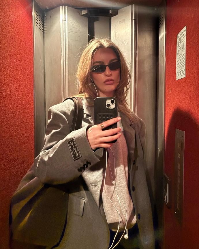 除了基础款的搭配,sina.anjulie对单品的材质选择也格外讲究,这正是她穿搭“显质感”的秘诀所在。秋冬季节,她的衣柜里从不缺羊绒、灯芯绒、羊毛等温暖又有肌理感的材质,比如一件深灰色的羊绒大衣,她会搭配一条同材质的围巾,软糯的触感不仅带来舒适的穿着体验,视觉上也充满了温柔的暖意;或是一件米色的灯芯绒衬衫,外搭一件黑色的皮夹克,两种不同质感的碰撞,让造型既有复古的腔调,又不失酷帅的细节。她的穿搭告诉我们,秋冬穿搭不必追求复杂的款式,只要选对材质、做好搭配,简单的单品也能穿出高级感。