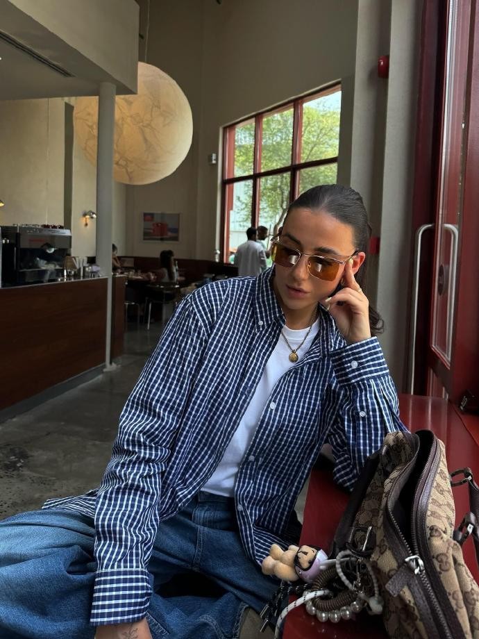 nicolerusssell 最让人惊艳的,是她对 “基础款盘活” 的把控力。她的衣柜里似乎永远有白衬衫、直筒牛仔裤、针织开衫这些常见单品,但换种搭配思路就有新感觉。比如一件普通的米白色针织开衫,她不会只单穿,而是内搭同色系吊带,再用一条金属细项链做点缀,下装配高腰阔腿牛仔裤,脚踩小白鞋,既保留了针织衫的温柔,又靠腰线和配饰避免了单调,整套 look 清爽又显气质,通勤穿完全不突兀,下班直接去约会也没问题。