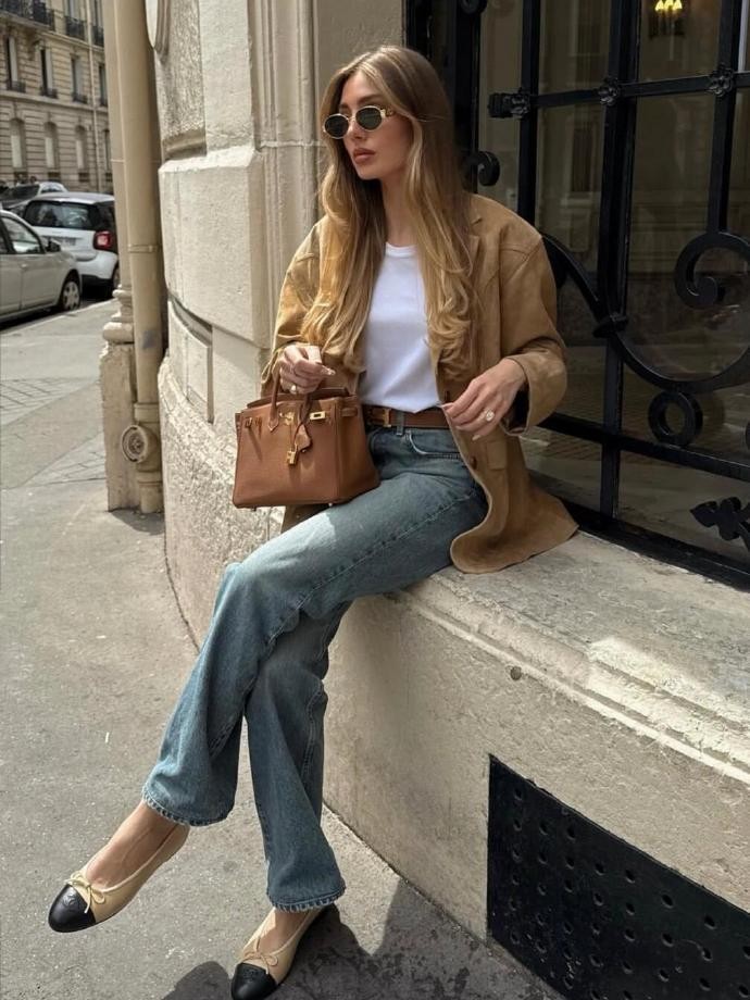 今天给大家介绍的是来自法国的ins时尚博主marielouduvillier,她以其独特的法式优雅与随性慵懒并存的穿搭风格,成为了许多时尚爱好者追捧的对象。她的穿搭没有繁复的装饰和夸张的设计,却总能在简约中透露出高级感,无论是日常出街还是特殊场合,都能给人带来满满的灵感。想要get她的同款穿搭精髓,首先要抓住的就是“简约不简单”这一核心。marielouduvillier的衣柜里似乎总有那么几件基础款,但通过巧妙的搭配,却能演绎出千变万化的风格。比如一件简单的白色衬衫,她可以搭配高腰直筒牛仔裤,再外搭一件驼色针织开衫,脚踩一双小白鞋,整体造型清爽又利落,充满了法式少女的活力;也可以将衬衫下摆塞进黑色西装裤里,配上一双细跟高跟鞋和一个简约的腋下包,瞬间变身职场通勤风,优雅又干练。这种基础款的灵活运用,正是她穿搭的一大亮点,也让普通人更容易模仿和借鉴。