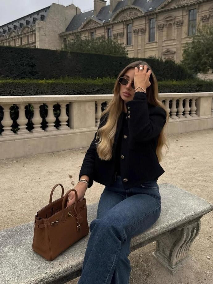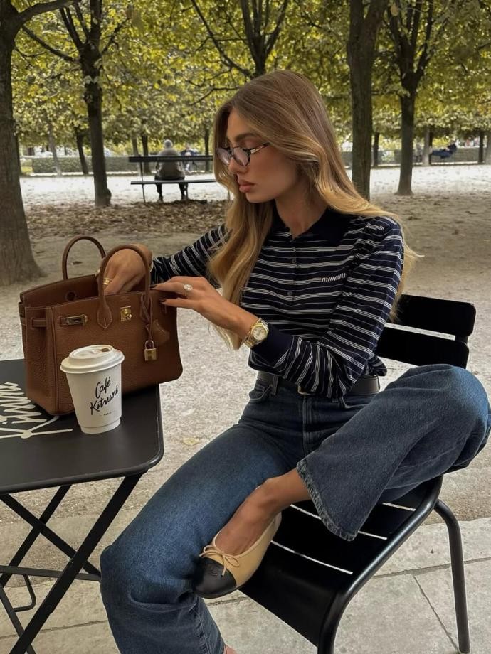 除了服装本身,配饰在marielouduvillier的穿搭中也扮演着重要的角色。她的配饰选择同样遵循简约精致的原则,很少出现过于夸张的款式。细链条项链、小巧的耳环、简约的手表、复古的腋下包以及各种款式的围巾,都是她常用的配饰。这些配饰虽然简单,但却能为整体造型增添细节感和精致度。比如在穿纯色毛衣的时候,她会搭配一条细链条项链,打破颈部的单调;在穿风衣或者大衣时,她会围上一条质感柔软的围巾,不仅保暖,还能让造型更有层次感。值得一提的是,她对包包的选择非常有心得,无论是小巧的腋下包还是实用的托特包,都能与不同的穿搭风格完美融合,成为整体造型的点睛之笔。