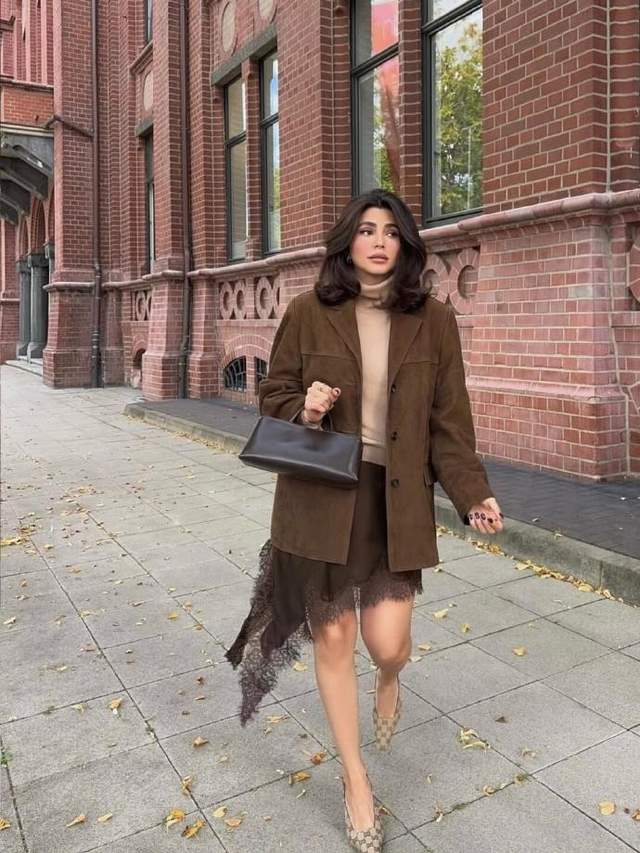 作为德系穿搭的典型代表,aydahadi 把 “松弛感” 拿捏得恰到好处。她的穿搭很少有紧绷的设计,大多选择宽松适度的版型,既不会过于拖沓,又能给身体足够的舒展空间,自带一种随性自在的气场。比如她常穿的 Oversize 西装,搭配直筒牛仔裤和小白鞋,没有刻意强调腰线,却能通过单品的比例平衡,显得身形高挑又利落;或是用长款针织开衫搭配简约连衣裙,脚下踩一双乐福鞋,温柔又大气,完全不费力就赢了质感。