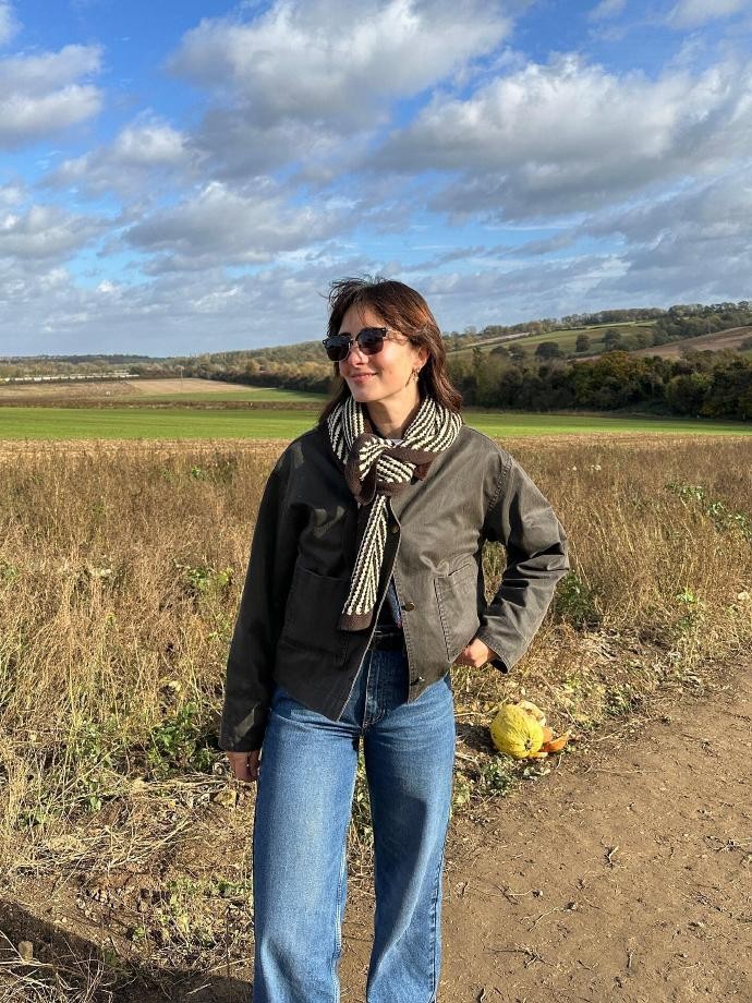 作为来自曼彻斯特的博主,她的穿搭还充分考虑了当地的气候与生活场景,兼顾美观与实用性。无论是通勤路上的利落造型,还是周末出游的松弛搭配,都能看到她对场景的精准适配 —— 职场穿搭会选择漏斗领外套搭配直筒裤,气场十足又不失专业;日常出街则用格纹单品搭配舒适针织,随性又有格调。她的穿搭从没有复杂的技巧堆砌,每一套都透着 “不费力的时髦感”,没有刻意摆拍的痕迹,却能在自然状态下展现出穿搭的精髓。