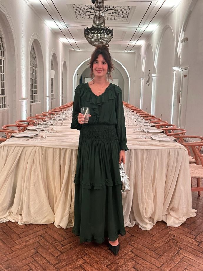 rosieannbutcher 的近期穿搭里,英伦标志性的格纹元素出镜率极高,从 Burberry 经典格纹长裤到复古感十足的维希格纹单品,都被她搭配得恰到好处。她偏爱用格纹单品搭配简约基础款,比如格纹长裤配浅色宽松短夹克,既减轻了深色格纹的沉闷感,又让造型层次分明;或是用棕色与米白色相间的维希格纹裙装,搭配纯色针织开衫,透着温柔又复古的秋日氛围。除了格纹,近期大热的漏斗领外套也是她的穿搭利器,挺括的结构性剪裁包裹至脖颈,宛如优雅的 “时尚盔甲”,让她每次亮相都气场全开,完美契合 2025 秋冬的潮流趋势。