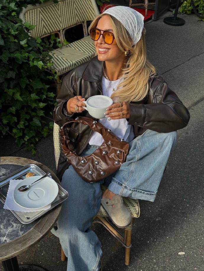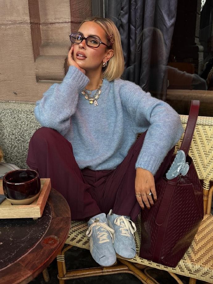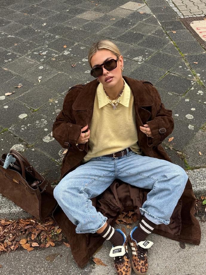 除了搭配逻辑,julia.kammerer 的美拉德穿搭还藏着很多实用小细节。她很懂利用配饰提升造型完整度,比如用棕色皮质贝雷帽呼应鞋子,用焦糖色腋下包平衡全身色彩,或者用一条细款金色项链打破同色系的单调,这些小配饰不会抢夺主体穿搭的风头,却能让整体造型更有记忆点。同时她也很注重材质的碰撞,比如针织的柔软搭配牛仔的硬朗,麂皮的细腻搭配羊毛的挺括,不同材质的融合让美拉德穿搭更有质感,避免了单一材质带来的沉闷感。