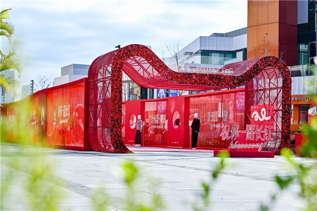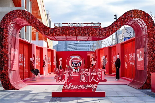 这并非一次简单的色彩营销,而是一场年末的审美叙事,以高级视觉语言解构并重塑“红色”精神内涵的文化实践。活动以红色为情感与视觉纽带,融合艺术装置、艺人共创、品牌展陈与线下互动,不仅打造了一个沉浸式的“祝福循环场”,也为服饰行业的年终营销注入了新的文化内涵与商业动能。