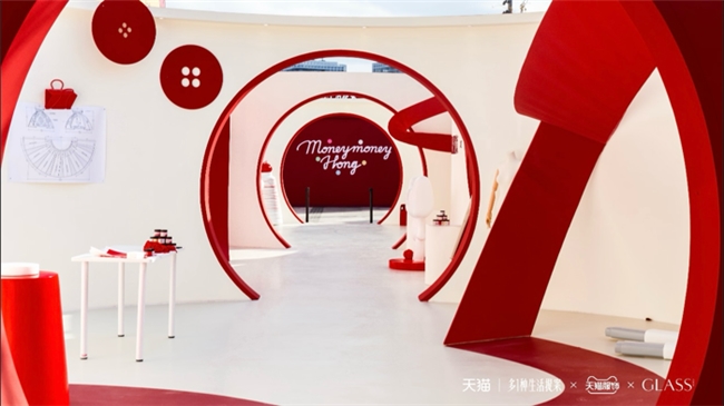 此次红品季以“祝你一路长hooooong”为核心创意概念,巧妙地将“红”的发音视觉化、情感化。通过“O”与“长”的意象延展——如圆环、丝带、蜿蜒路径等——构建出一个可感知、可交互的祝福能量空间。