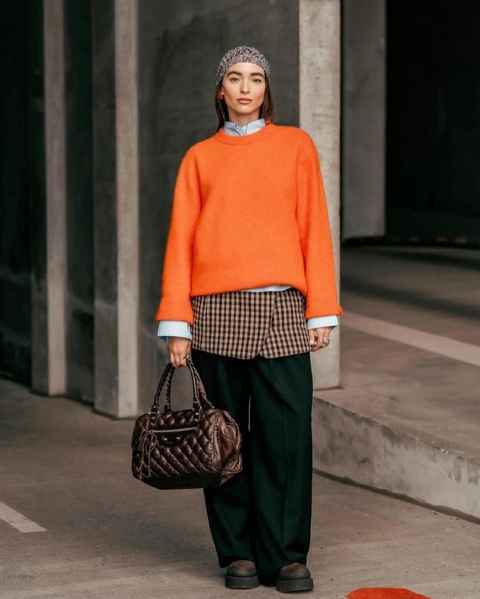 搭配逻辑上,eviwave 擅长用 “少即是多” 的思路打造层次感,拒绝过度堆砌。她常常以 “同色系搭配” 为基础,比如深灰色西装搭配浅灰色针织衫,米白色风衣内搭白色 T 恤,整体色调统一和谐,视觉上干净利落;偶尔也会用撞色打破单调,但始终保持 “主次分明”,比如黑色大衣内搭红色高领衫,或是蓝色牛仔裤搭配米色外套,撞色不突兀,反而能让造型瞬间出彩。同时,她很注重 “版型平衡”,比如宽松的外套会搭配修身的下装,紧身的上衣会搭配直筒或阔腿裤,既避免了穿搭的臃肿感,又能优化身材比例,让不同身材的人都能轻松驾驭。