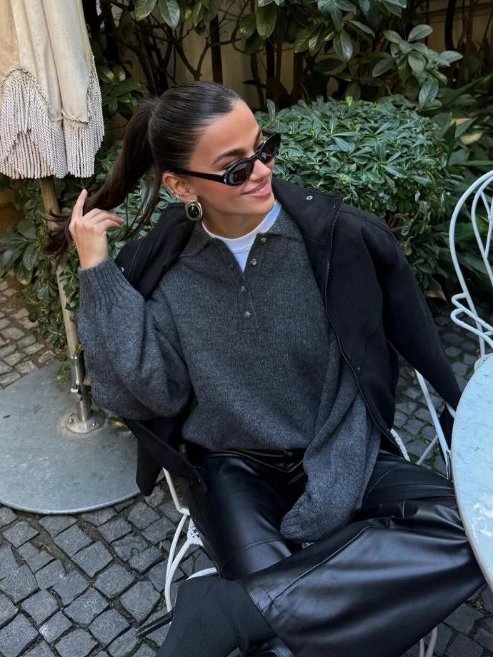 想要复刻selinyagcioglu的时髦感,核心就在于掌握她“基础款为底、特色款点睛”的搭配逻辑。她的衣橱里没有过多浮夸的设计,反而堆满了白衬衫、简约针织衫、直筒牛仔裤、基础款风衣这类经典单品——这些人人都有的基础款,在她的搭配下总能焕发新的生命力。她擅长以基础款搭建造型基底,再用少量带设计感的单品打破平庸,比如用黑色基础高领衫搭配阔腿牛仔裤,外搭一件复古格纹西装,脚下踩一双小白鞋,基础款的沉稳与特色款的个性相互融合,既日常实穿,又轻松避开造型的沉闷感,普通人照搬思路就能穿出不错的效果。