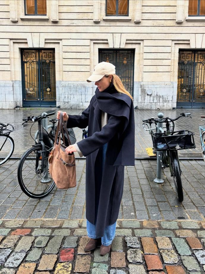 aga_bdk的穿搭之所以值得借鉴,还在于她那些简单易操作的搭配技巧,新手也能轻松掌握。“上松下紧”是她常用的搭配公式,比如oversize毛衣搭配紧身牛仔裤,或是宽松大衣搭配修身针织裙,既能遮掩身材小缺陷,又能营造出慵懒显瘦的效果。配饰的运用也恰到好处,大容量包包兼顾实用与时髦,贝雷帽、棒球帽能瞬间提升造型感,金属细项链的叠戴则为简约造型增添层次感。她的穿搭精髓在于“精心打扮的随意感”,不堆砌流行元素,而是通过材质、色彩与剪裁的平衡,打造出适合日常、质感满满的造型,这正是法式穿搭的魅力所在,也为我们的秋冬过渡穿搭提供了绝佳的参考范本。