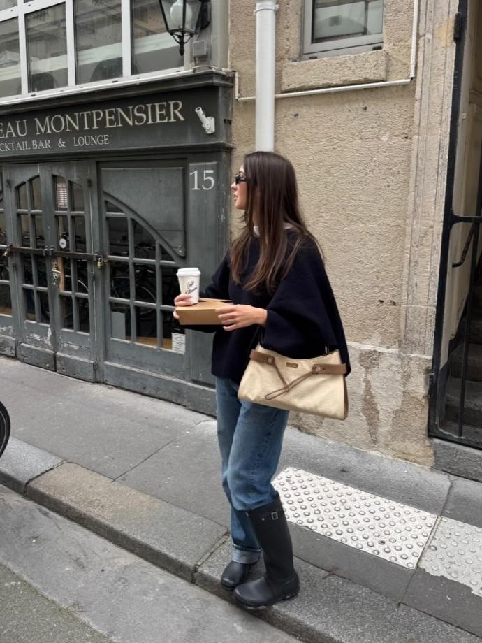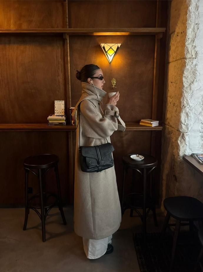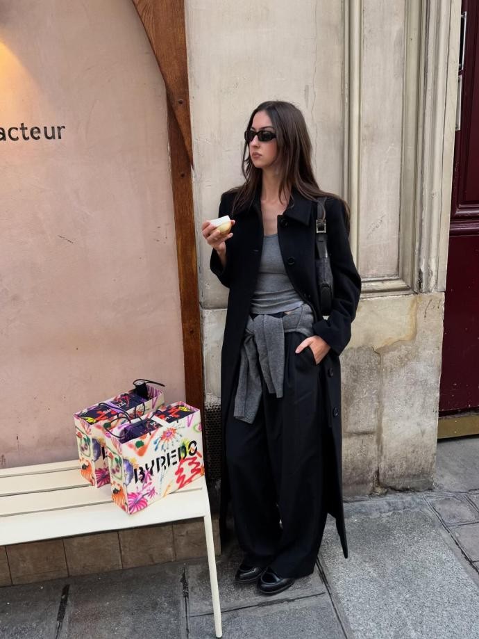 在春节这样充满仪式感的节日里,laraaceliaa的黑灰穿搭并没有忽略“节日氛围”的营造,而是通过细节设计传递年味。她会选择带有轻微光泽感的黑灰单品,比如丝绒材质的黑色半身裙、亮面材质的灰色短外套,在灯光下自带细腻的光泽,既提升了造型的高级感,又能呼应春节的喜庆氛围;配饰方面,她会用金色小配饰做点缀,比如小巧的金色项链、简约的金色耳环,或是带有金属扣的黑色包包,金色与黑灰的碰撞既能中和黑灰的沉闷,又能增添节日的精致感,让整体造型更有记忆点。这种“细节取胜”的穿搭思路,让黑灰穿搭不再单调,而是充满了巧思,完美平衡了日常感与节日感。
