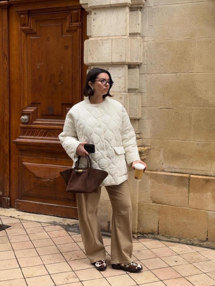 mar.gotyou的春节无红穿搭核心,在于精准拿捏“节日感”与“日常感”的平衡,她最常选择的是米白色、燕麦色、浅驼色这类温柔系色调,搭配软糯的针织材质或垂坠感极佳的羊毛大衣,自带一种温暖治愈的气质,很贴合春节阖家团圆的温馨氛围。就像她近期分享的一套Look,浅燕麦色高领针织衫搭配同色系直筒阔腿裤,外搭一件米白色长款毛呢大衣,脚下踩一双裸色短靴,配饰选择简约的珍珠耳饰和皮质手提包,整体造型干净利落,又透着恰到好处的精致感,不管是去长辈家拜年,还是和朋友出门小聚,都显得大方得体。