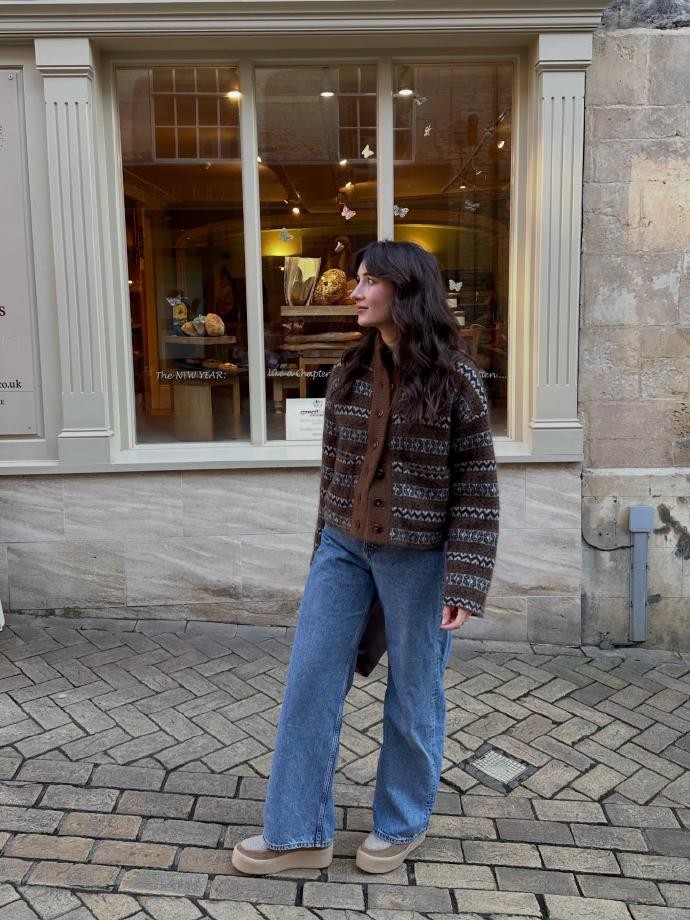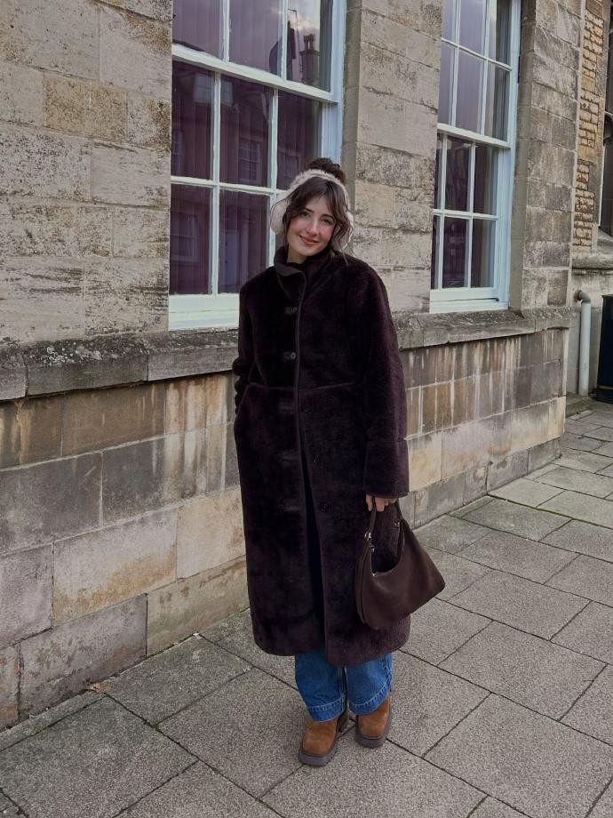 在rosieannbutcher的无红春节穿搭思路里,叠穿不仅能提升层次感,还能精准适配不同节日场景,完美诠释“可洒脱可优雅”的风格精髓。针对家庭团圆的温馨场景,她会选择软糯的燕麦色针织开衫,内搭浅棕色连衣裙,裙摆长度适中,搭配棕色乐福鞋,温柔的色系搭配针织材质的软糯感,让节日氛围更显温馨;若是春节期间有小型聚会或下午茶,她则会用黑色风衣搭配浅灰色连衣裙,内搭白色高领打底,既保留了风衣的利落洒脱,又兼具连衣裙的优雅,再配上一双黑色短靴,造型感拉满,完全不用依赖红色就能成为焦点。