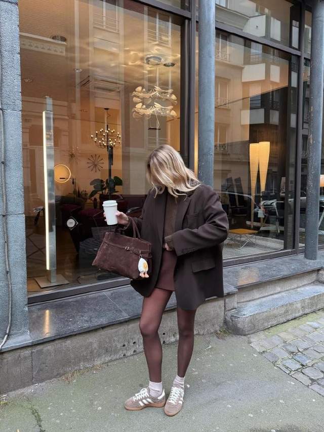 今天给大家介绍的是ins时尚博主mmequeenb,就用极具质感的棕调穿搭,为我们解锁了无红春节的高级打开方式。她的穿搭以棕色系为核心,将浅棕、焦糖棕、深棕等不同明度的棕色玩转自如,自带温暖醇厚的气质,与春节阖家团圆的温馨氛围完美契合。一件焦糖棕的羊毛大衣,搭配浅棕色高领针织衫与深棕色直筒皮裤,再踩一双同色系的复古短靴,没有多余的装饰,却凭借棕色系的层次渐变与优质面料的肌理感,轻松穿出优雅显贵的格调,不管是走亲访友还是家庭小聚,都能成为人群中低调又亮眼的存在。