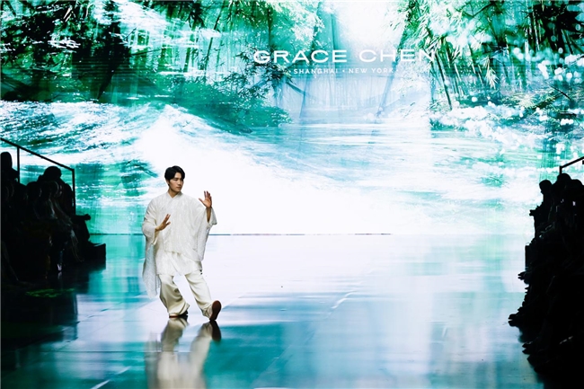 作为品牌《美之理想》三部曲的第二篇章,GRACE CHEN从首部《帝风》系列的天地仪式感,将目光投向中国文人雅士的精神世界,《士雅》系列打破传统时装秀形式,以“君子风骨”为核心搭建了一场融合时尚、音乐、舞蹈、太极与古诗词朗诵的沉浸式时尚剧场,重新诠释风雅与责任、传统与当下的深层关联。