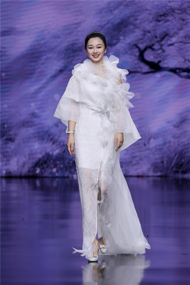 第一幕「梅」以南开大学文学院教授张静的诗歌朗诵拉开序幕,身着线条利落的时装,以克制之姿演绎傲骨的内敛与力量。
