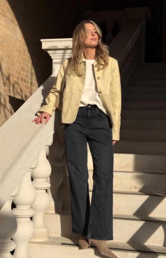 marthawr 尤其擅长用低饱和色系打造松弛氛围,比如浅米色夹克内搭米白针织衫,再配上深灰阔腿牛仔裤,同色系的呼应让整体造型干净又利落,而驼色短靴则悄悄提升了精致度。在另一套 look 里,她用燕麦色大衣叠穿浅黄夹克,内搭依旧是简约的白 T,深浅层次分明,既保暖又不会显得臃肿,完美诠释了 “less is more” 的穿搭理念。