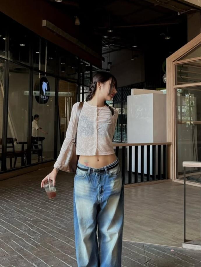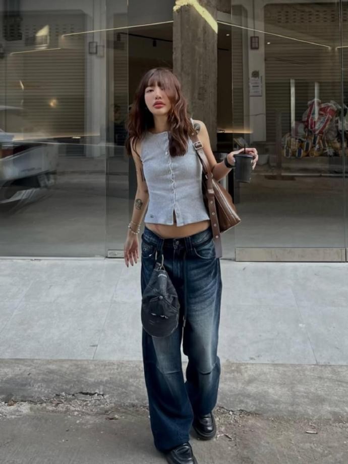 freaking.hungryy 的穿搭核心,在于对基础款的极致运用和版型的精准把控。她的衣橱里永远少不了灰色针织开衫、宽松连帽卫衣、复古牛仔裤和简约短款上衣,这些看似普通的单品,在她的搭配下总能焕发出新的生命力。短款剪裁的上衣巧妙露出腰线,消解了宽松下装的拖沓感,无论是搭配格纹短裤打造随性少女感,还是配高腰阔腿牛仔裤凸显利落气场,都能在露肤与遮肉之间找到完美平衡。这种 “上短下长” 的万能公式,既适配多种身形,又能轻松打造出三七分的黄金比例。