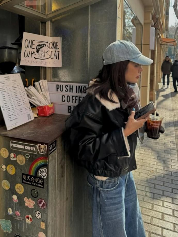 街头感与松弛感的完美融合,是 freaking.hungryy 穿搭最迷人的地方。她从不会被场合定义穿搭,一件黑色皮质拼接外套,既能搭配牛仔裤在街头咖啡摊营造酷飒氛围,也能切换成温柔穿搭风格。她的穿搭告诉我们,时尚从来不是被规则束缚,而是找到适合自己的风格,在舒适与时髦之间找到平衡。不必追逐昂贵的单品,也不用复刻复杂的造型,学会运用基础款、把控版型、点缀配饰,每个人都能像 freaking.hungryy 一样,穿出属于自己的街头松弛感。