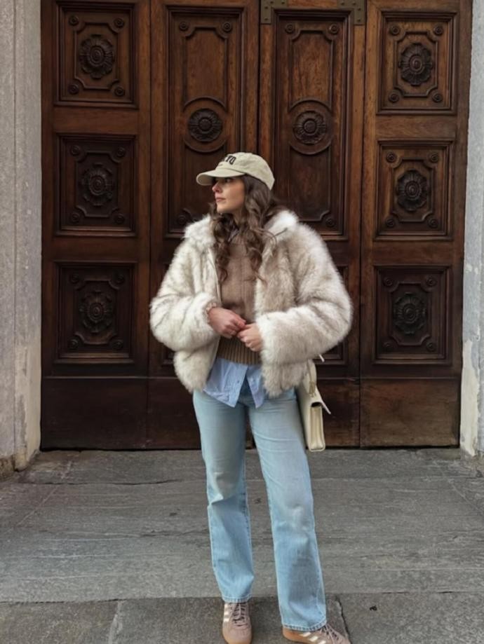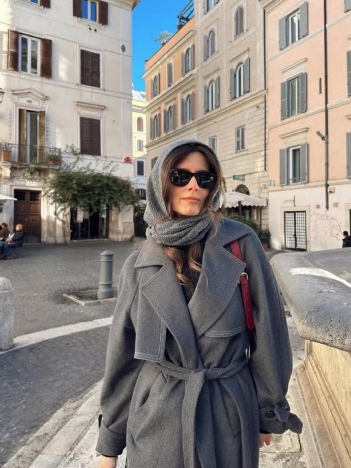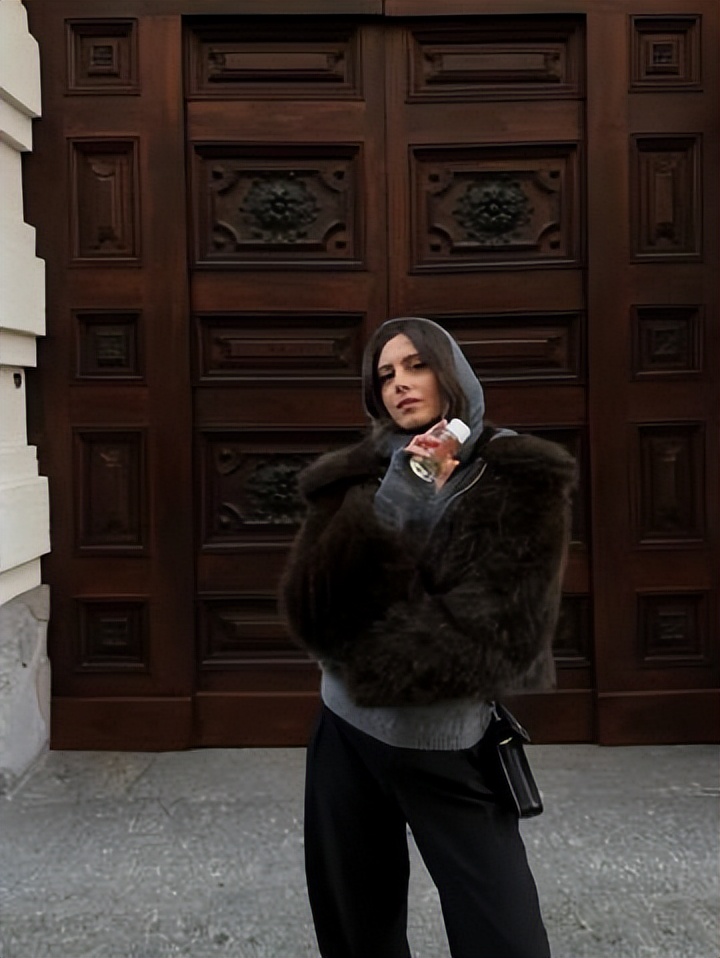 叠穿巧思与材质混搭,是 hilylucy 穿搭的另一大亮点,极具借鉴意义。她深谙冬日保暖与时髦的平衡之道,将不同材质、单品层层组合:深灰色毛呢大衣内搭灰色连帽围巾,在罗马的街头温柔舒展,保暖又有层次感;黑色皮草外套搭配浅蓝牛仔裤,柔软的毛绒与硬朗的牛仔碰撞,甜酷平衡恰到好处;黑色长款大衣搭配蓝色牛仔裤与黄色运动鞋,利落的大衣与休闲的牛仔、亮色的鞋子结合,随性又不失设计感。此外,她对配饰的选择也十分考究,细巧的项链、复古的墨镜、质感的手袋,都成为造型的点睛之笔,让每一套 look 都充满细节。