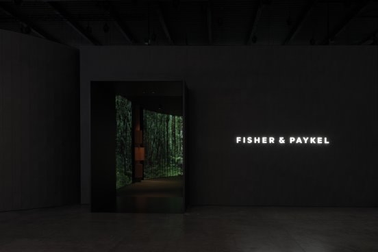 作为 EuroCucina 浓烈氛围中的一片宁静绿洲,该装置将整体形态、无缝集成家电以及包裹在森林面纱下的多层次感官环境融为一体。Poole 将“自然—仪式”主题描述为 Fisher & Paykel 世界观的一种表达。