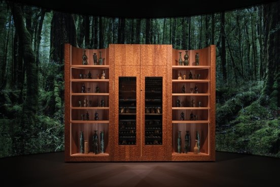 内部的四个场景徐徐展开,每一个场景均由桃柘罗汉松(一种新西兰原生木材)与火山玄武岩精心打造。艺术家 Aaron Scythe 定制的陶瓷元素,伴随着鸟鸣、香气、光影以及高分辨率的背光森林幕布,营造出一种深度沉浸式环境。